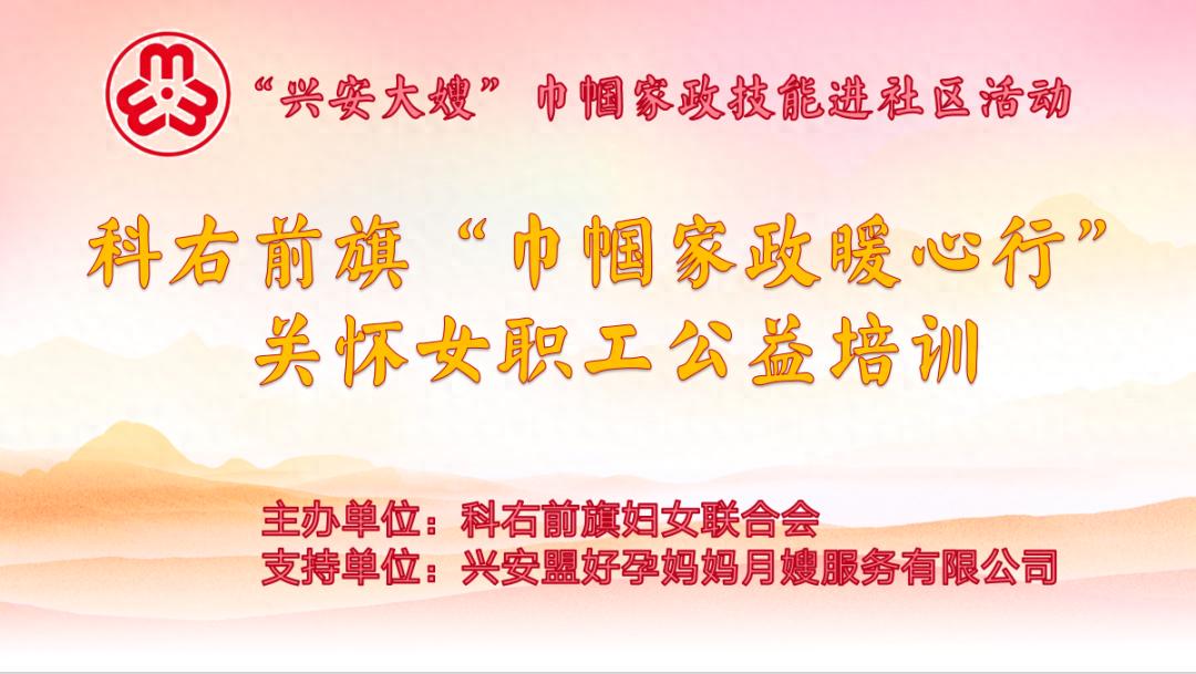 为扎实推进“兴安大嫂”巾帼家政技能进乡村活动,进一步服务妇女、服务家庭、服务社会,10月15至17日,科右前旗妇联面向全旗女职工开展“巾帼家政暖心行”关怀女职工公益培训,着力解决女职工在科学育儿、产前产后护理、营养膳食方面知识储备不足,30余人参加培训。